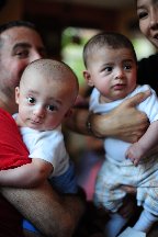 & DJ 6-month Diapers PartyHeld a large party to introduce Darren and Christopher to friends, co-workers, and neighbors. In true fashion, Ryan served up 3 rib roasts, 25 Cornish game hens, and 10 side dishes for everyone. We would like to thank everyone for the diapers, clothing & toys we received. CJ and DJ have enough diapers to last them until they are potty trained. CJ & DJ behaved very well, meeting and being held by our guests. CJ apologizes for any spit-up he may have caused. |