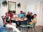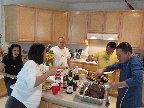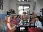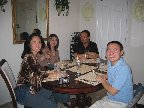 Parties with Co-WorkersRyan, master chef, hosted two dinner parties in August with his Qualcomm co-workers. Ryan's menu included Montreal Salmon, prosciutto-wrapped asparagus, jasmine rice, and wasabi-lime dipping sauce. Dinner was preceded by caviar and other hors d'oeuvres. A decadent chocolate cake from Extraordinary Desserts finished the evening. |