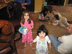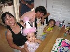 3rd Birthday Party - August 2008It's that time of year again for the birthday girl, who get's lots of cake and presents! Happy birthday Heather Hernandez! This year's theme was all about education, as Heather (with a little help from Hailey) opened all the educational books we got her. But we were outdone by the cutest Barbie tea set (drats!) After Heather distributed cake to everyone, it was time to make our own party favors, and boy wait until you see what everyone came up with! D&D, thanks for the delicious Vietnamese food! |