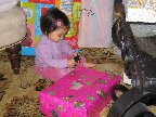 5th Birthday - December 2008We wouldn't dream of missing Hailey's Birthday party, and this year turned out to be quite lucrative for her. Not only did she get ponies, cool cloths, a singing Barbie, awesome Teddy Ruxpin, and a bitchen Princess Bike; Haily and Heather also made a new friend with a dinosaur. Remember to feed him, and rub his chin. He likes that. |