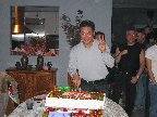 Party with Co-Workers - June 2006Ryan, master chef, hosted two dinner parties in June with his Qualcomm co-workers. Ryan's menu included Montreal Salmon, prosciutto-wrapped asparagus, jasmine rice, and wasabi-lime dipping sauce. Dinner was preceded by caviar and other hors d'oeuvres. A decadent chocolate cake from Extraordinary Desserts finished the evening. |