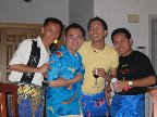 & Hoang's Sarong Party:Decked out in our Hawaiian shirts, coconut boobies and grass hula skirts for Wayne & Hoang's summer bash. |